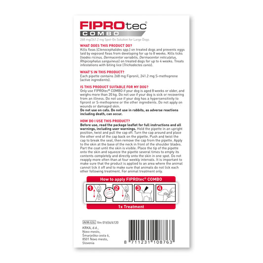 Beaphar FIPROtec COMBO Flea & Tick Spot On (20-40kg) 6 pipettes