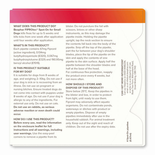Beaphar FIPROtec Flea & Tick Spot On (2-10kg) 4 pipette