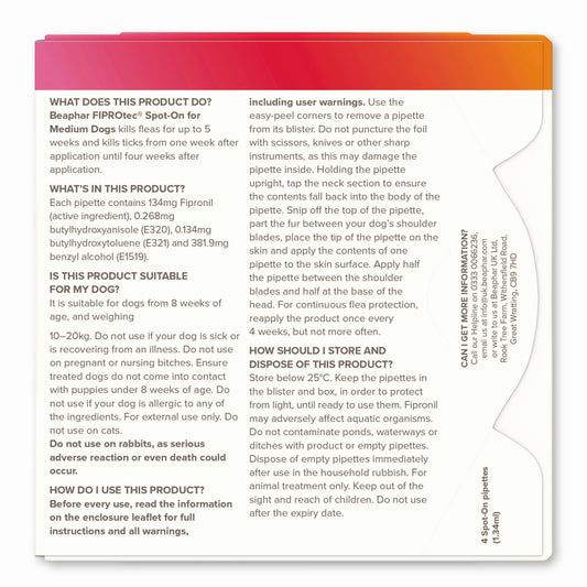 Beaphar FIPROtec Spot-On for Dogs (10-20kg) 4 pipettes