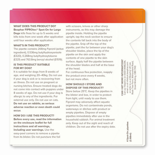 Beaphar FIPROtec Spot-On for Dogs (20-40kg) 4 pipettes