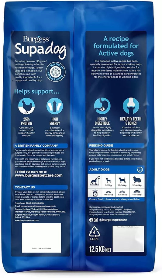 Burgess Supadog Adult Active Chicken and Beef Dry Dog Food 12.5kg