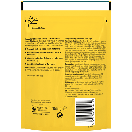Pedigree Tasty Minis Chewy Slices with Beef & Poultry Dog Treats 155g