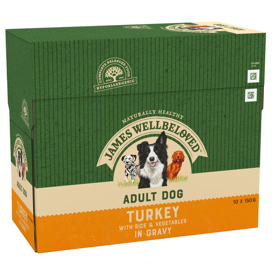 James Wellbeloved Turkey & Rice Adult Dog Pouches - 10 x 150g