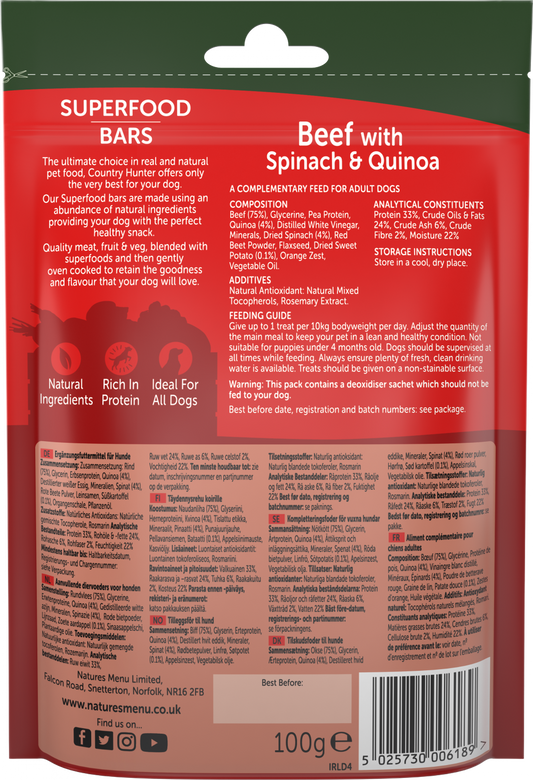 Natures Menu Country Hunter Superfood Bar Beef with Spinach & Quinoa