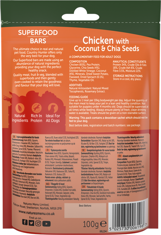 Natures Menu Country Hunter Superfood Bar Chicken with Coconut & Chia Seeds