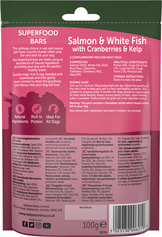 Natures Menu Country Hunter Superfood Bar Salmon & White Fish with Cranberries & Kelp