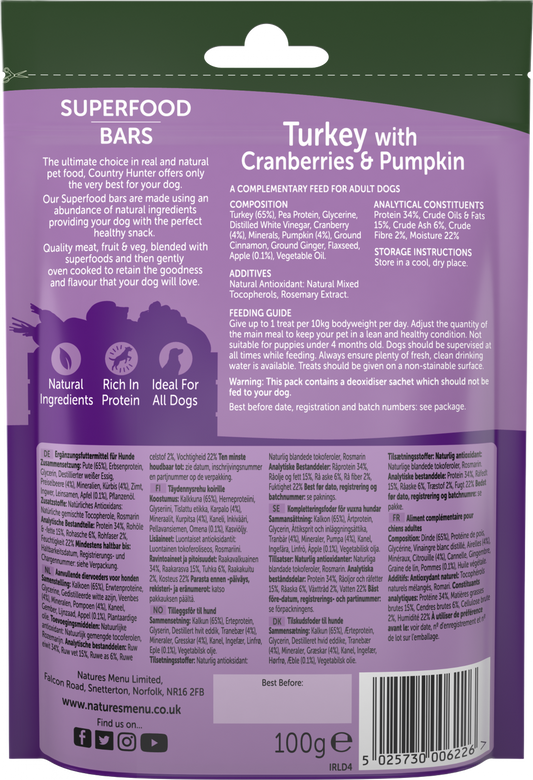 Natures Menu Country Hunter Superfood Bar Turkey with Cranberries & Pumpkin