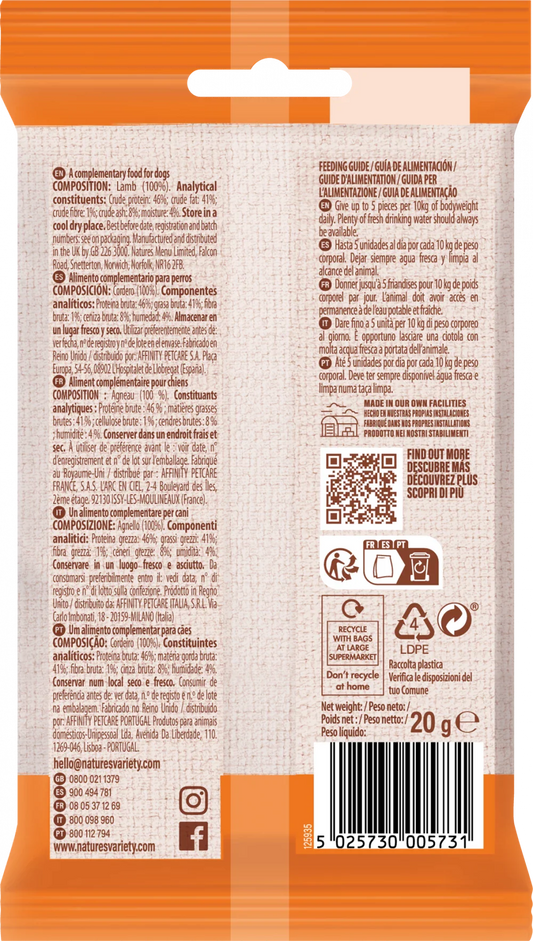 Nature's Variety Freeze Dried Meat Bites 100% Lamb For Puppy and Adult Dogs 20g