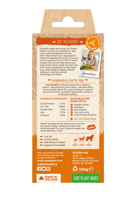 Soopa Single Pack Carrot and Pumpkin Dental Sticks for Dogs 100g