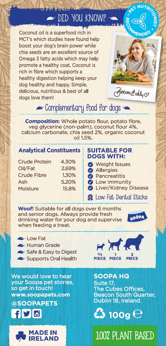 Soopa Single Pack Coconut and Chia Seed Dental Sticks for Dogs 100g