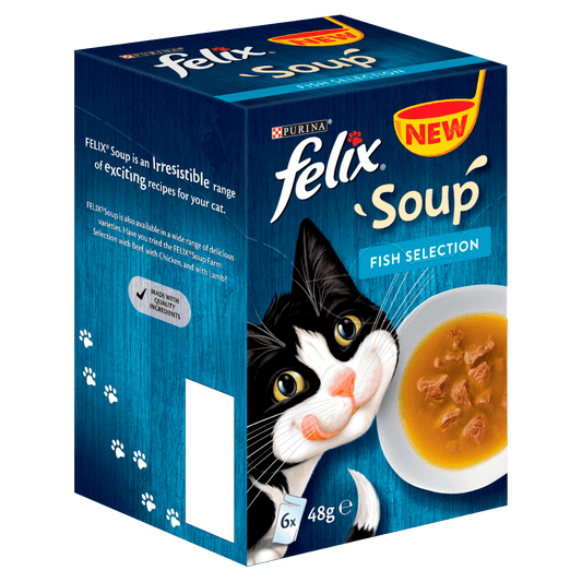 Felix Adult Soup Tender Strips with Cod, Tuna and Plaice Wet Cat Food 6 x 48g
