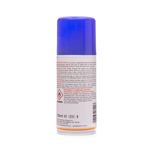Johnsons Dry Foam Shampoo Aerosol for Dogs & Cats 150ml