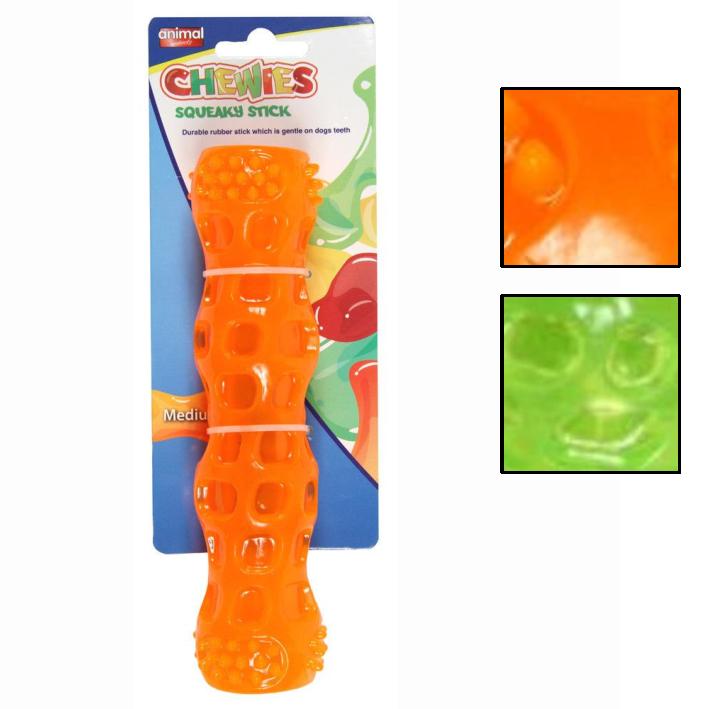 Animal Instincts Chewies Squeaky Stick Medium 18cm Made from durable rubber which is gentle on dogs' teeth, Animal Instincts Chewies Squeaky Stick is a knobbly, wobbly fun chew toy. Chewies Squeaky Stick is a great playtime toy that will help keep your dog entertained.