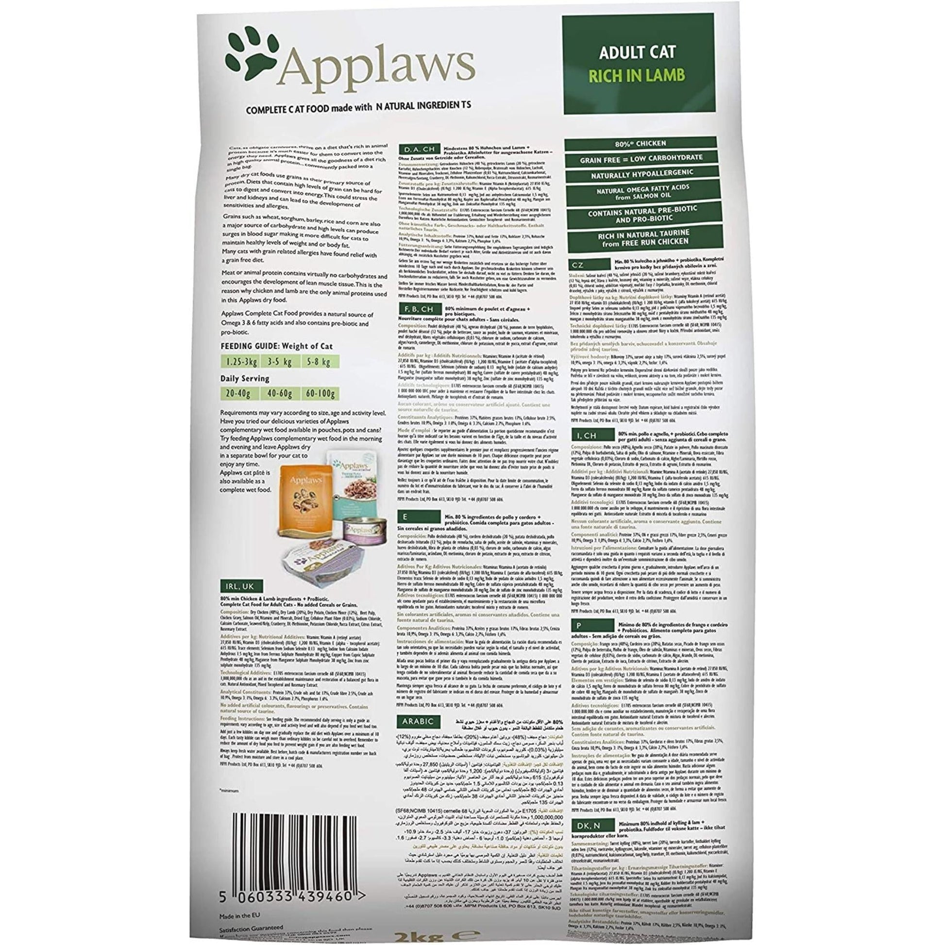 Choose Applaws Complete Dry Adult Cat Food Grain Free Chicken with Lamb as a high-quality cat food option. Provide your cat with a wholesome and satisfying meal that contains essential ingredients and nutrients to support their well-being and promote their overall health.