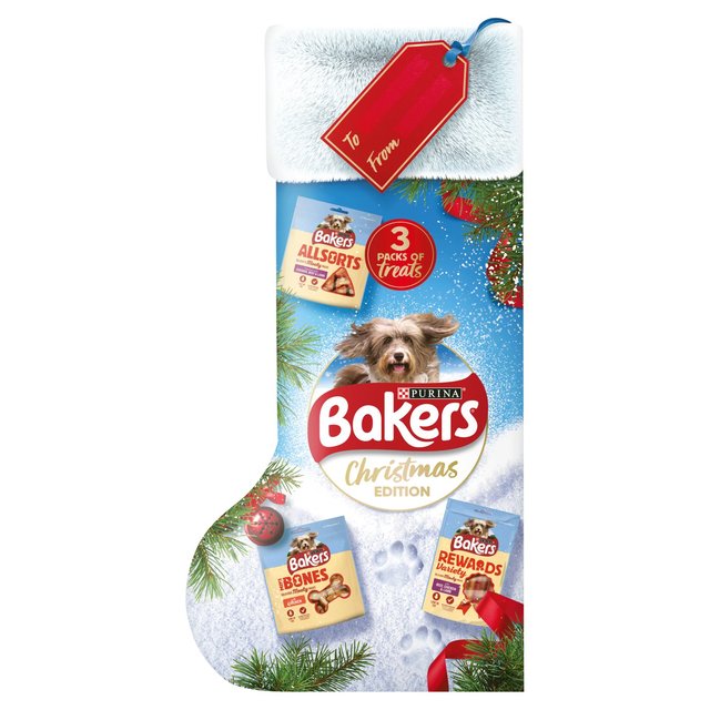 This BAKERS Dog Treats Christmas Stocking with three kinds of delicious adult dog treats is the perfect gift for your pooch this Christmas. Bursting with flavours as well as essential nutrients, this festive themed stocking contains Bakers Allsorts, Bakers Rewards Variety Pack and Mini Bones.