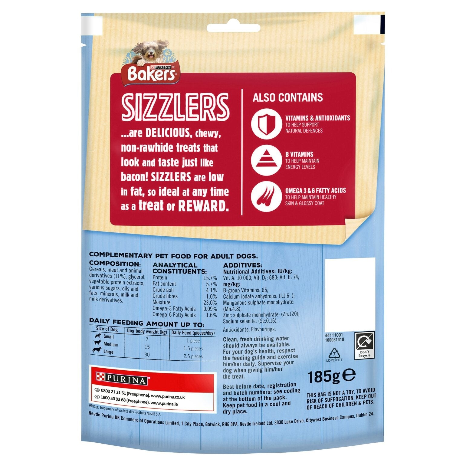 BAKERS Sizzlers are a tasty and chewy treat for your dog, packed with an irresistible bacon flavour. Not only do they taste great, but they also provide specific nutrients to help keep your dog healthy.