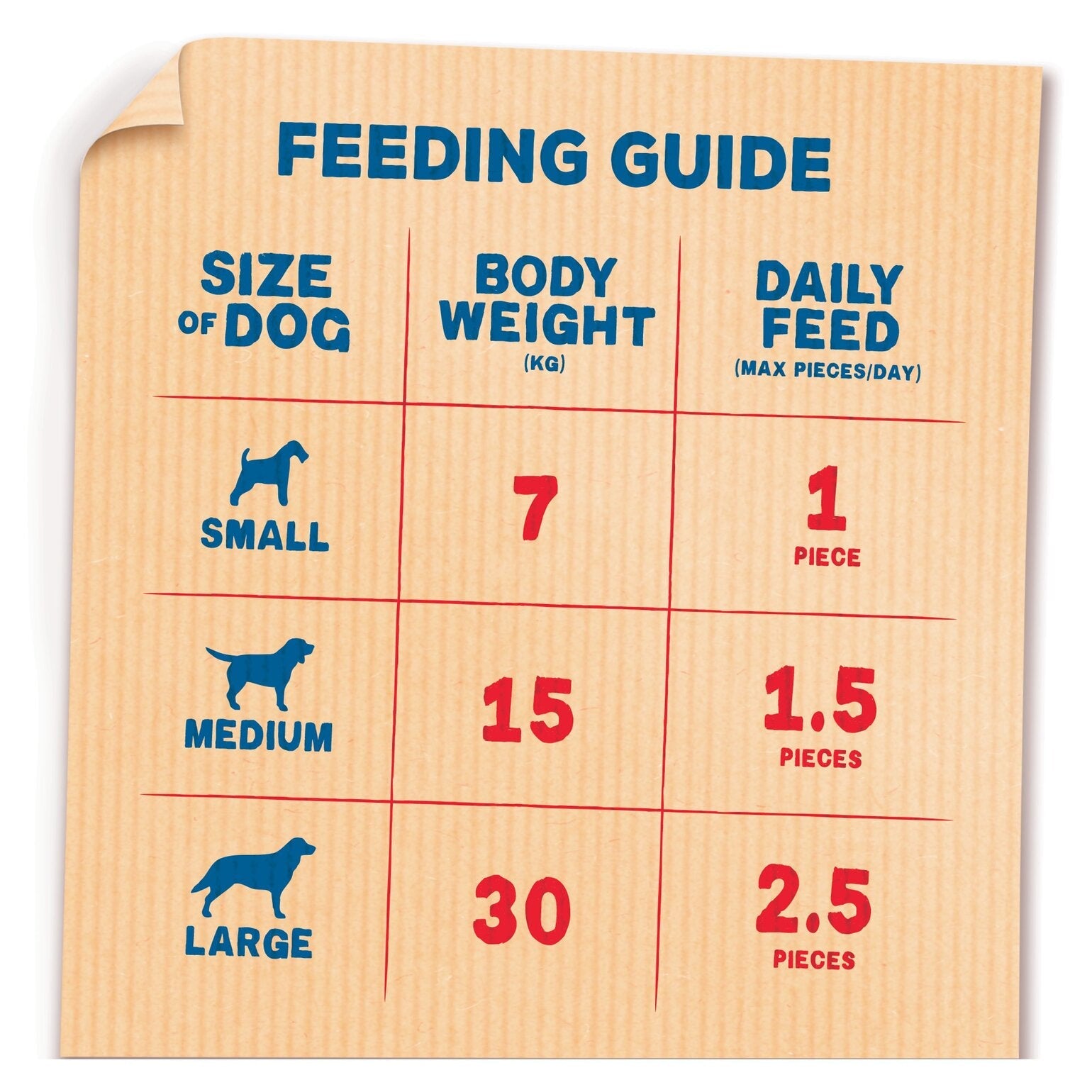 These treats contain omega 3 and 6 fatty acids, which help maintain healthy skin and promote a glossy coat, keeping your dog looking and feeling its best. They also contain vitamins and antioxidants to support your dog's natural defences and overall well-being. Additionally, B vitamins are included to help maintain your dog's energy levels, keeping them active and playful.
