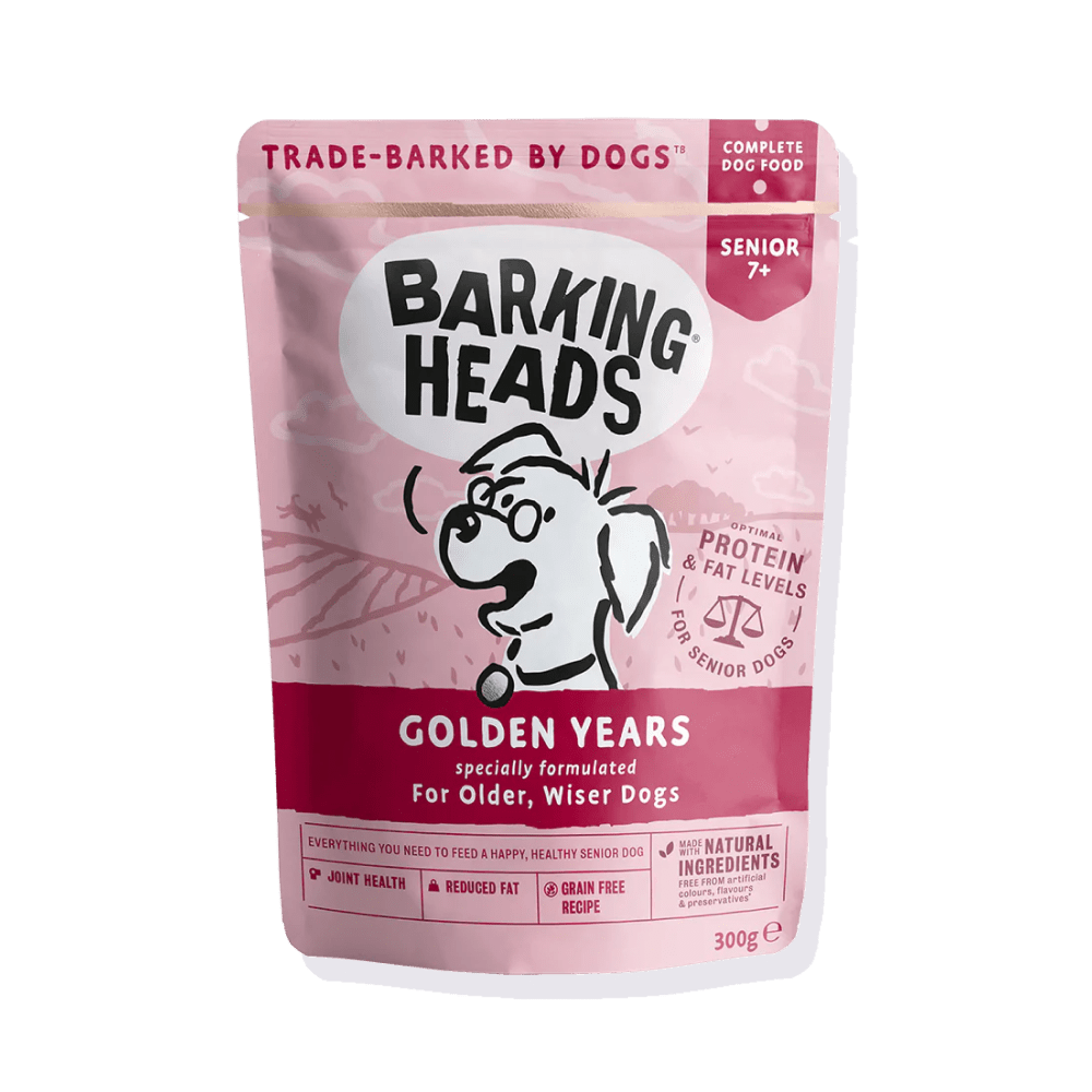 Barking Heads Golden Years, a complete wet food recipe specially formulated for older, wiser dogs. We understand that as dogs age, their nutritional needs change, which is why we've crafted this delicious and nourishing meal to support their health and well-being in their golden years.