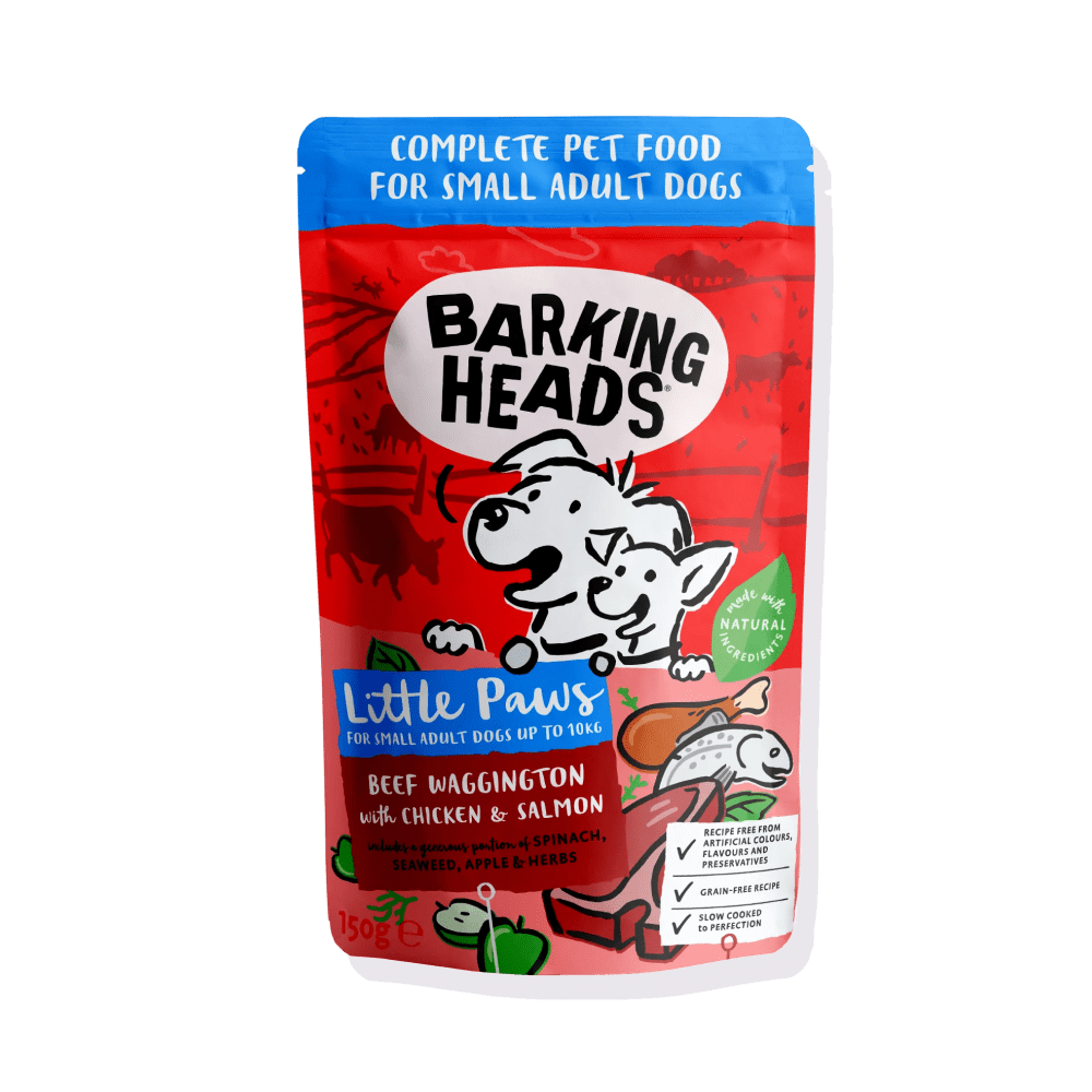 Additionally, this grain-free formula is gentle on sensitive tummies, promoting healthy digestion. Free from fillers and artificial additives, it's a nutritious feast that your Little Paws will love. Ideal for small breed dogs weighing up to 10kg, Barking Heads Beef Waggington with Chicken & Salmon is the perfect meal for your petite pooch.