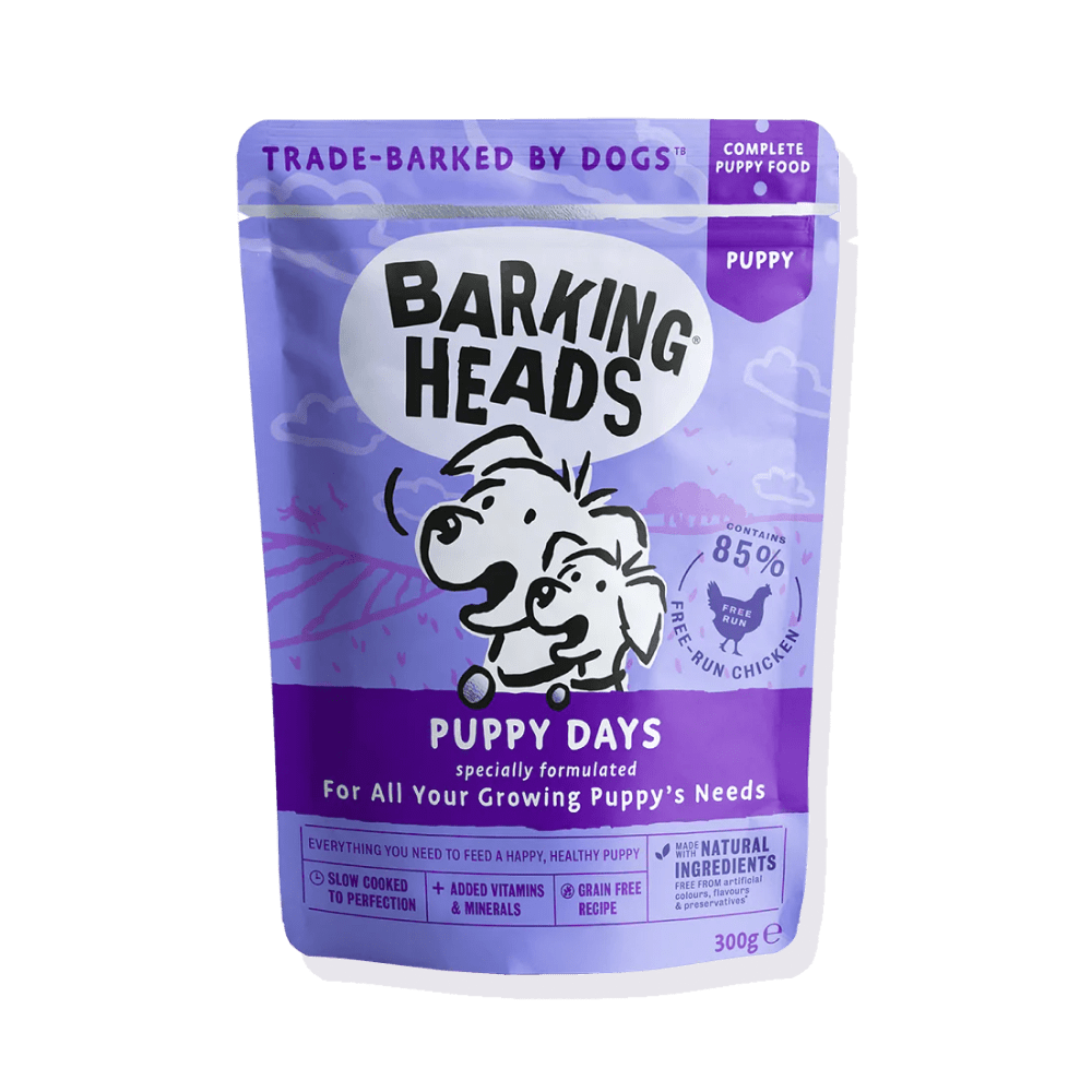Barking Heads Puppy Days, is a complete wet puppy food that's packed with over 80% quality meat, specifically formulated to meet all the needs of your growing puppy. This delicious grain-free recipe is slow-cooked to paw-fiction, using only the finest natural ingredients to ensure the best for your furry friend.