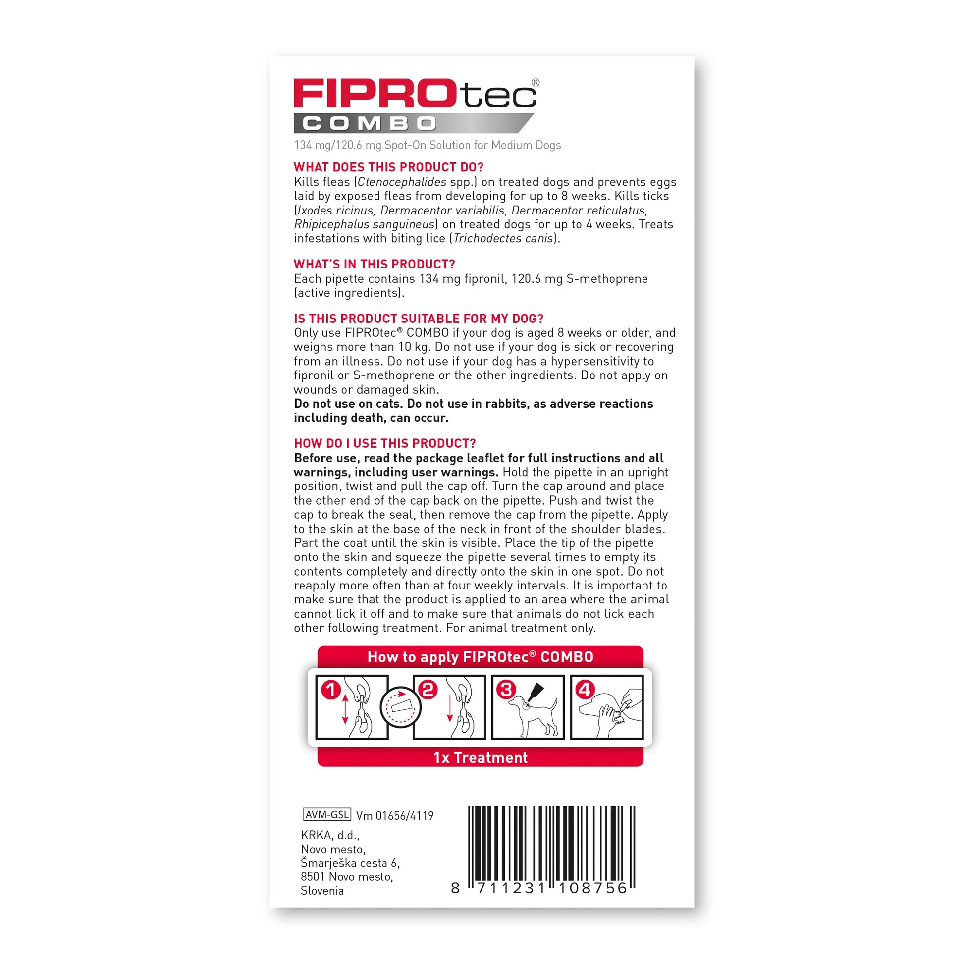 Beaphar FIPROtec COMBO Spot On (10-20kg) 6 pipettes