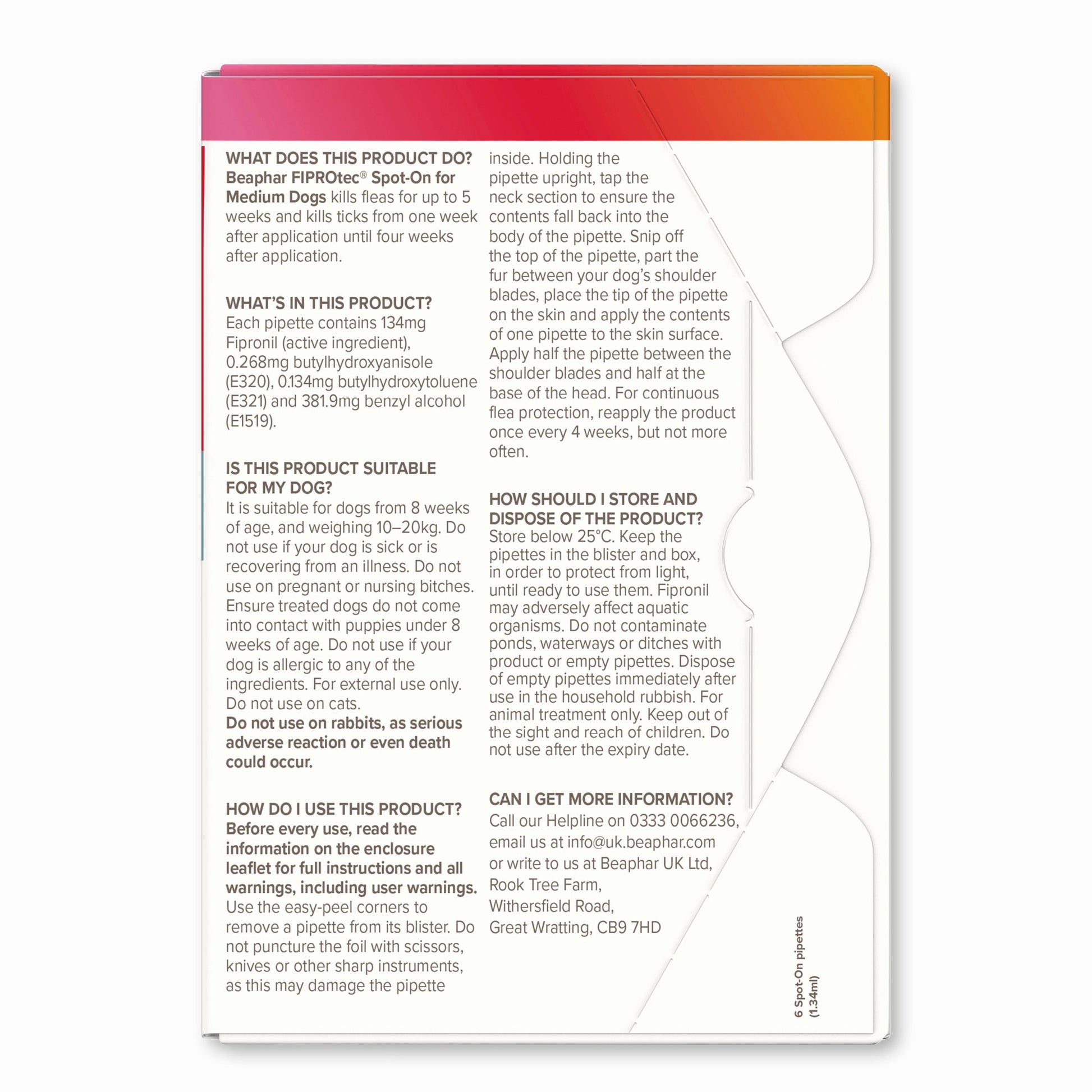 Beaphar FIPROtec Spot-On for Dogs (10-20kg) 6 pipettes