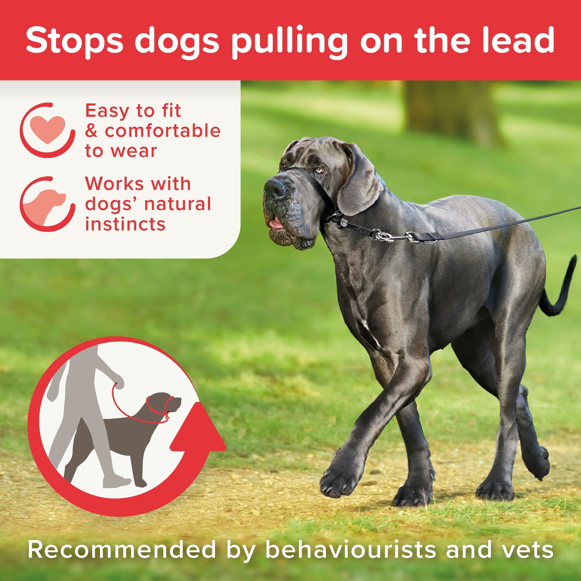 - It functions like a halter rope, guiding the dog's movement by leading the nose, and the body naturally follows.