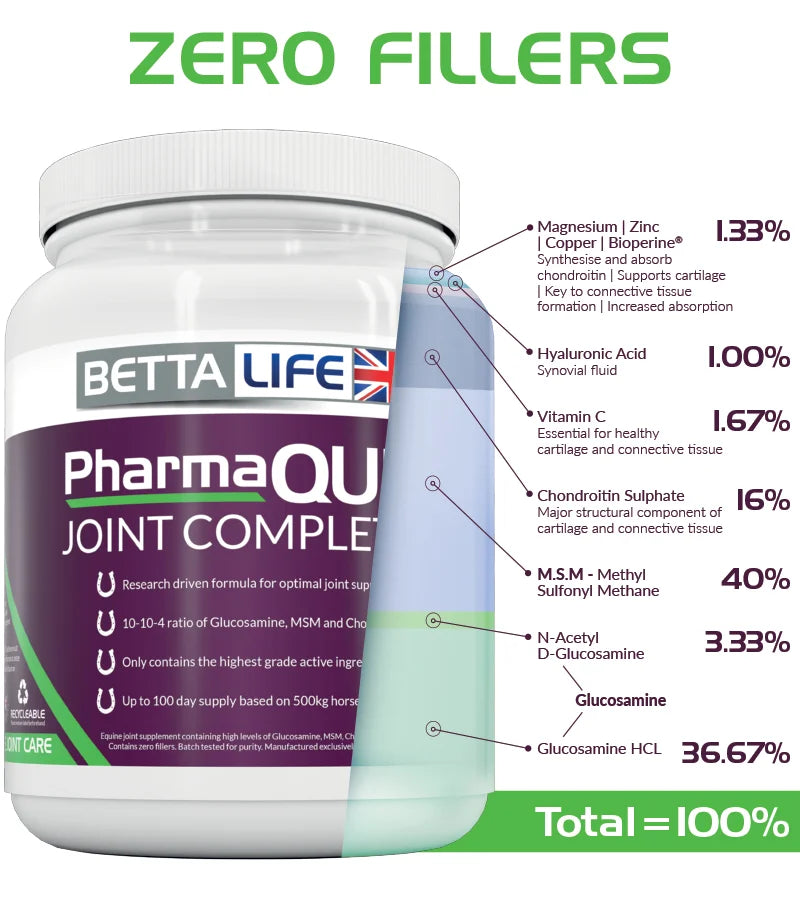 To ensure your horse performs at their best, it's crucial to provide optimal joint care. BETTALIFE® offers joint supplements formulated to boost the body's natural joint-repairing substances without extravagant claims, prioritizing your horse's health and longevity in their working career.