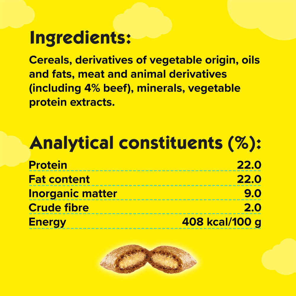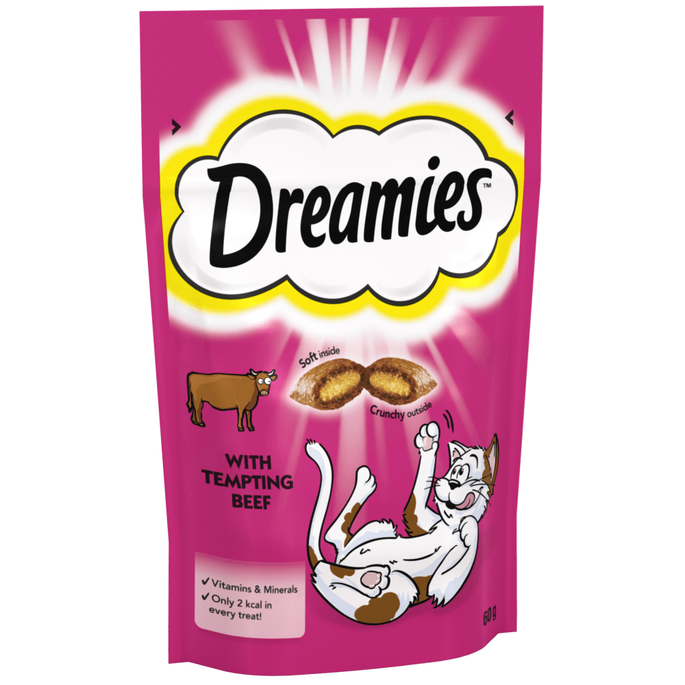 DREAMIES™ cat treats are designed to be irresistibly delicious for your feline friend. Made with a dual texture, they have a crunchy exterior and a soft, creamy centre, creating a delightful texture that cats find incredibly enticing. The Tempting Beef flavour is particularly popular among cats, and the taste is so satisfying that cats simply can't resist them.