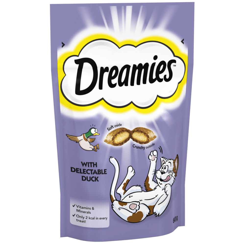 By offering your cat DREAMIES™ cat treats with Delectable Duck flavour, you can provide them with a delightful and satisfying snack that taps into their natural instincts and love for tasty treats. The crunchy and creamy texture combination, along with the delectable duck flavour, will surely make these treats a hit with your feline companion. So go ahead, give the bag a shake, and enjoy the joy on your cat's face as they come running for this tasty delight!
