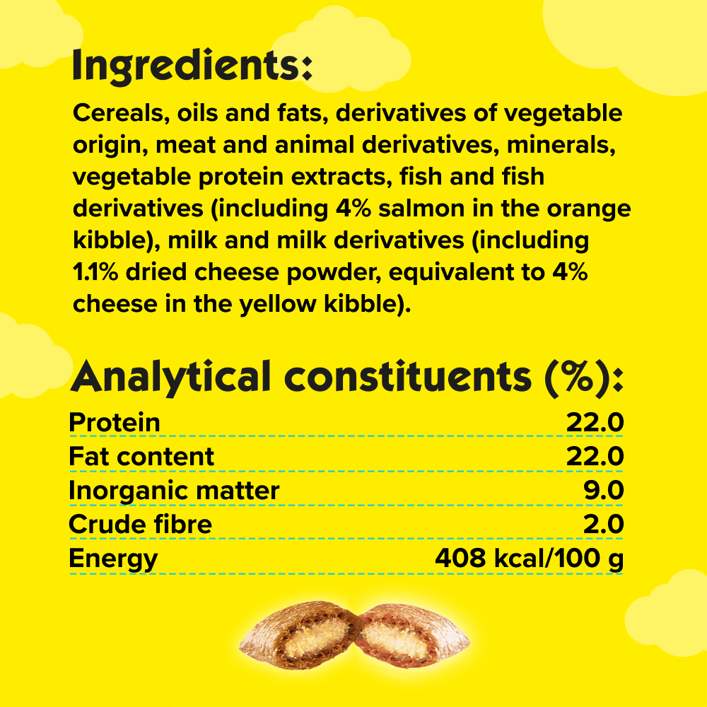 As with other DREAMIES™ cat treats, the Mix bag offers the delightful sound of treats shaking inside the bag. Cats quickly learn to recognize this sound and associate it with the tasty treats they love, so when you give the bag a shake, your cat will come running, eagerly anticipating the mouthwatering combination of flavours awaiting them.