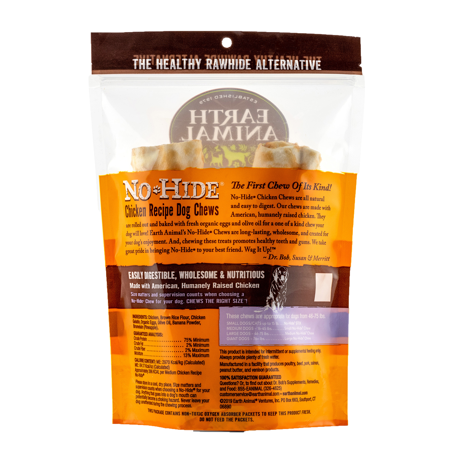 Earth Animal Chicken No Hide Chews Medium Dog Treats 2 pack 120g
