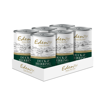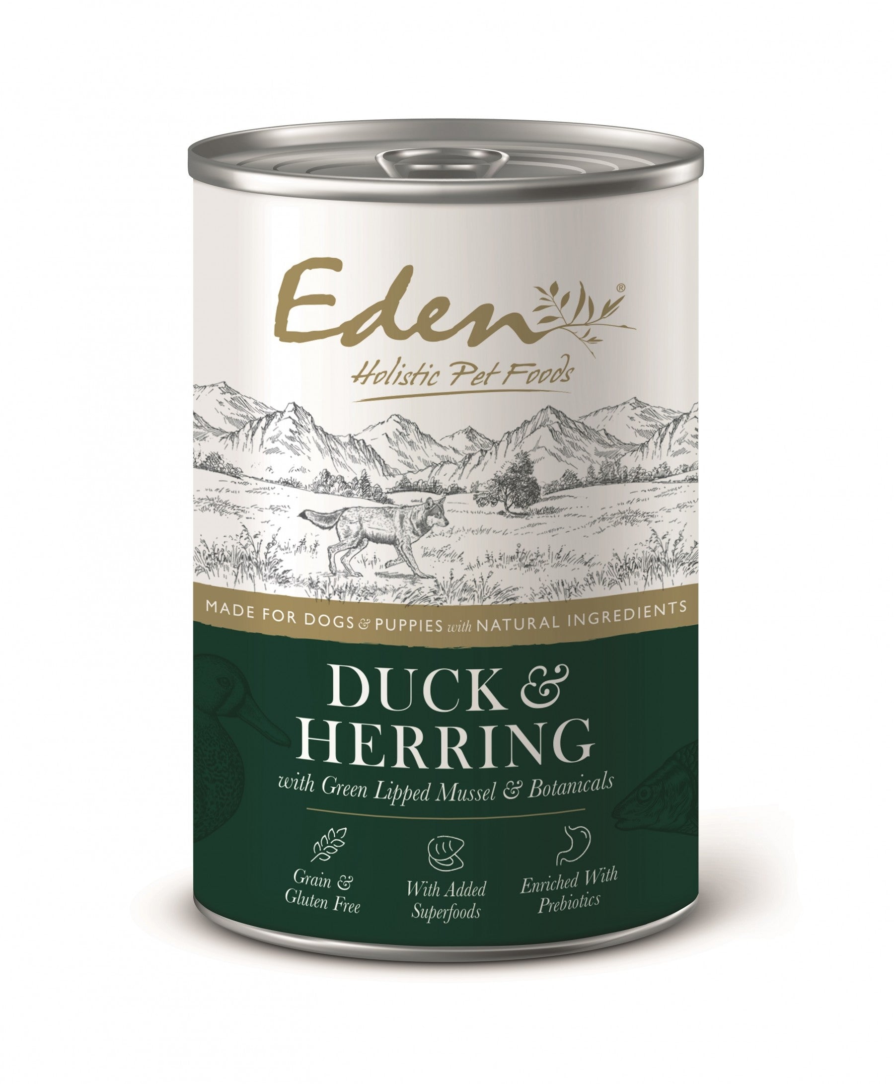Eden Gourmet Duck and Herring is a balanced and complete grain-free food with 70% fresh meat, anti-inflammatory super foods; Green Lipped Mussel and Turmeric combined with the highest quality chelated minerals and vitamins, to provide your dog the very best nutrition.in a tasty convenient meal.