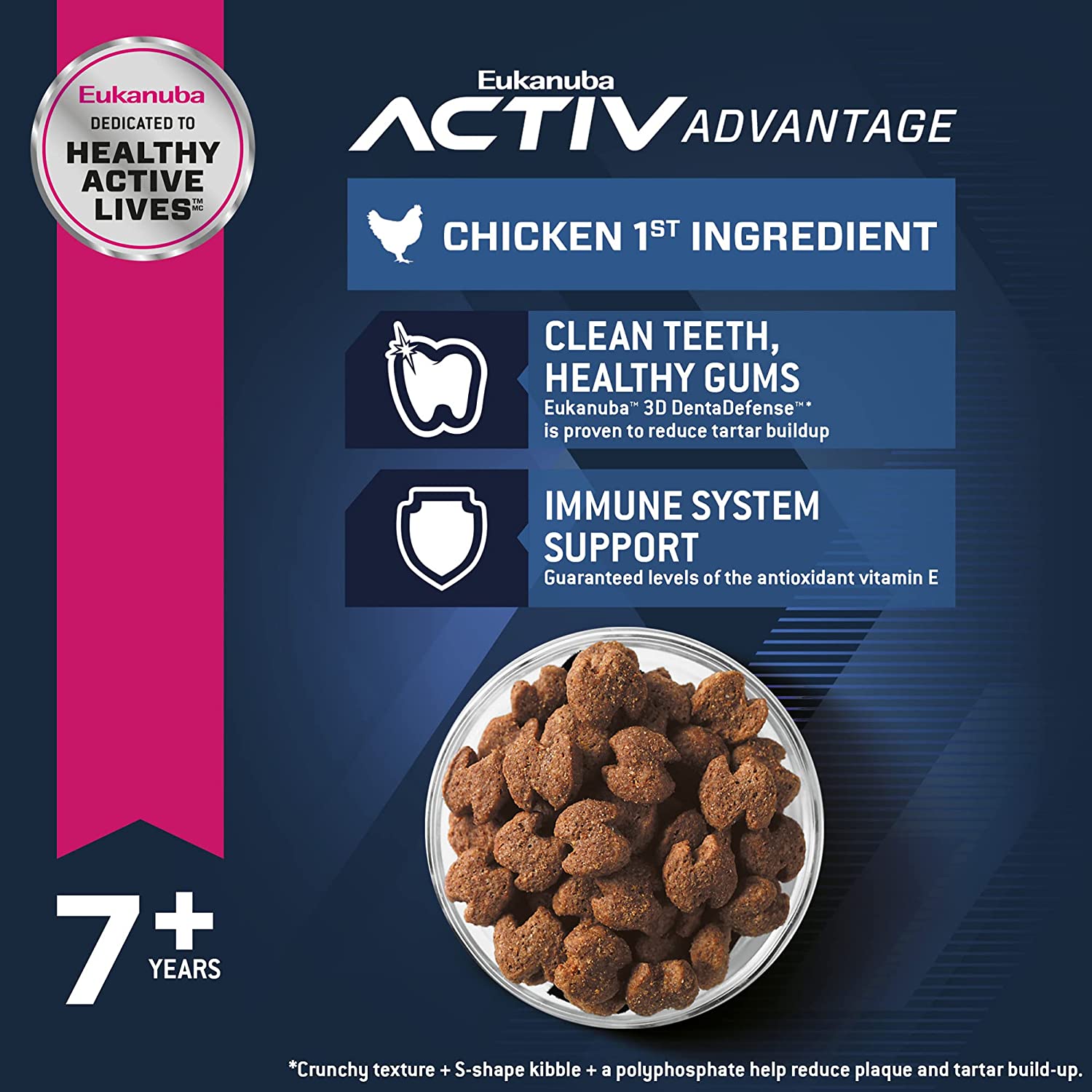 Dental Health: The Eukanuba 3D DentaDefense technology helps reduce tartar buildup, promoting clean teeth and healthy gums, which is crucial for maintaining good oral health in senior dogs.