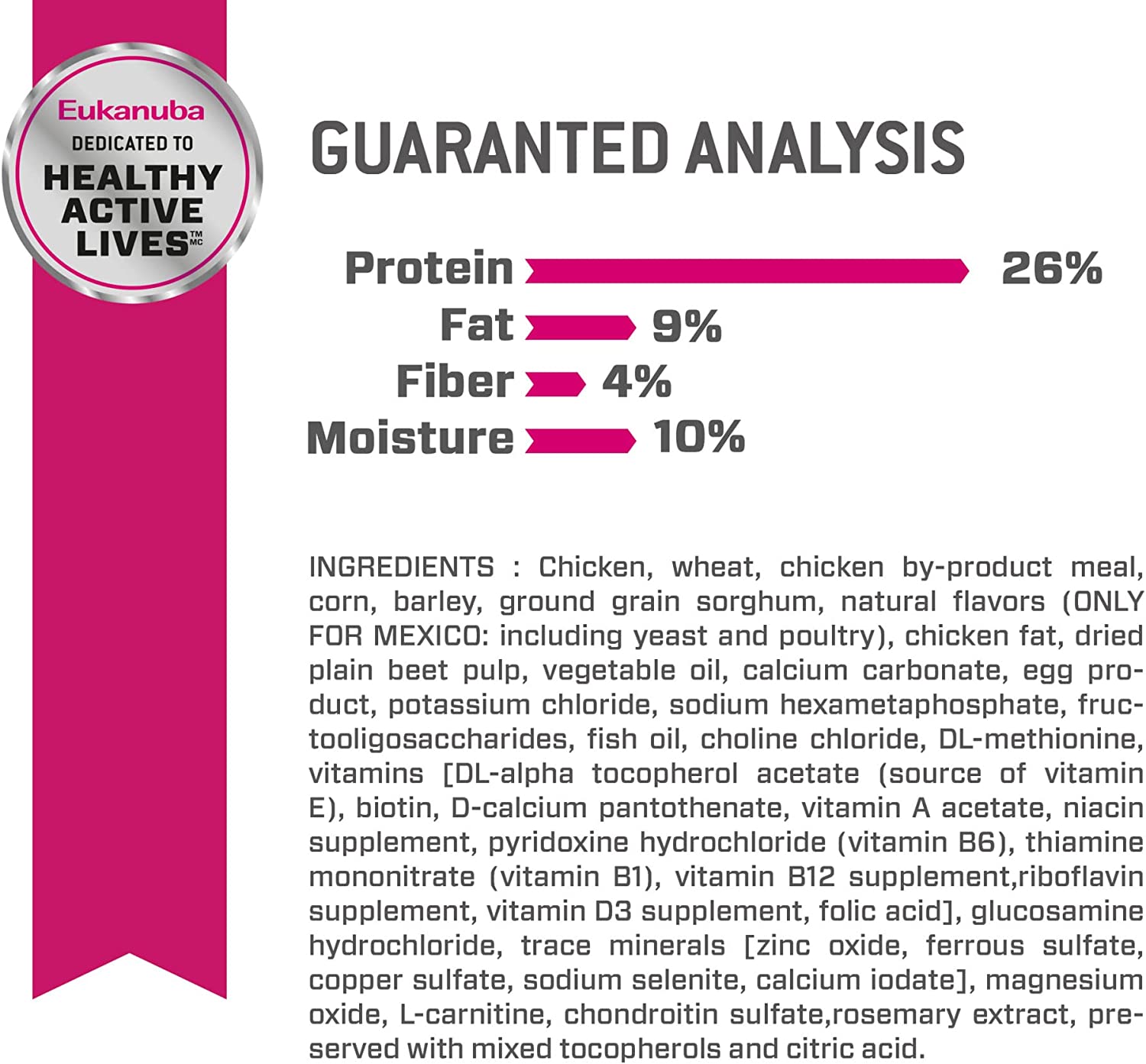Muscle and Joint Health: Chondroitin sulfate and 50% more glucosamine compared to Eukanuba Adult Medium Breed dry dog food are included in the formula to support your big dog's muscle and joint health. This helps to promote mobility and overall joint function.