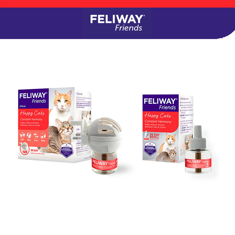 FELIWAY Friends is a product designed to help reduce tension and conflict between multiple cats living in the same household. It contains a synthetic copy of the cat appeasing pheromone, which helps to promote a sense of harmony and companionship among cats.