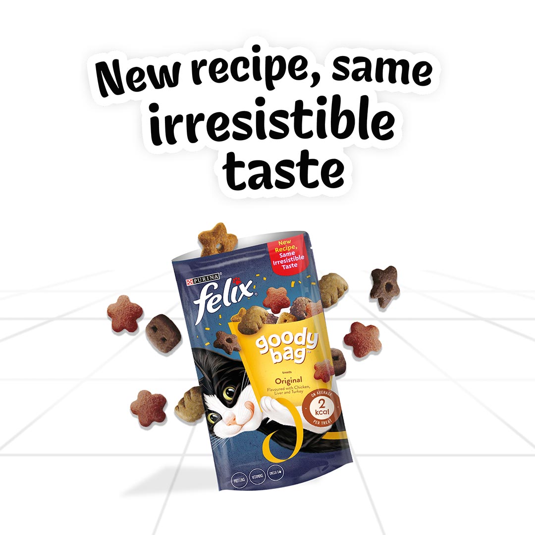 Simply give the pouch a gentle shake, and you'll witness the magic as your cat comes running, eager to enjoy the delightful sound of our delectable FELIX Goody Bag Original Mix cat treats.