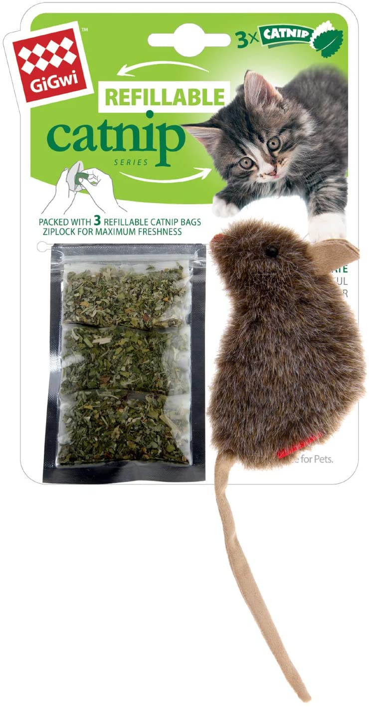 Welcome to GiGwi! Our mission is simple: to reinvent playtime! The Refillable Catnip series comes with three ziplocked bags of high-quality North American Catnip, a non-addicting herb that encourages playful behaviour for cats. 70% of cats have an inherited gene that compels them to respond to Catnip. These toys have a special pouch that holds the Catnip teabags to be added again and again for long-lasting fun.