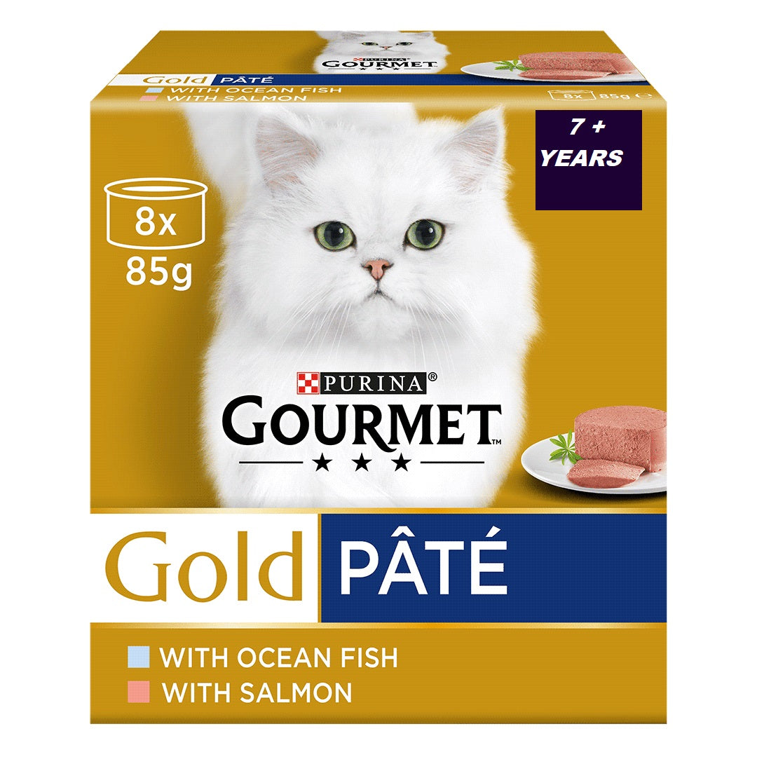 Gourmet Gold Senior 7+ Pate Recipes Ocean Fish & Salmon Wet Cat Food 8 x 85g