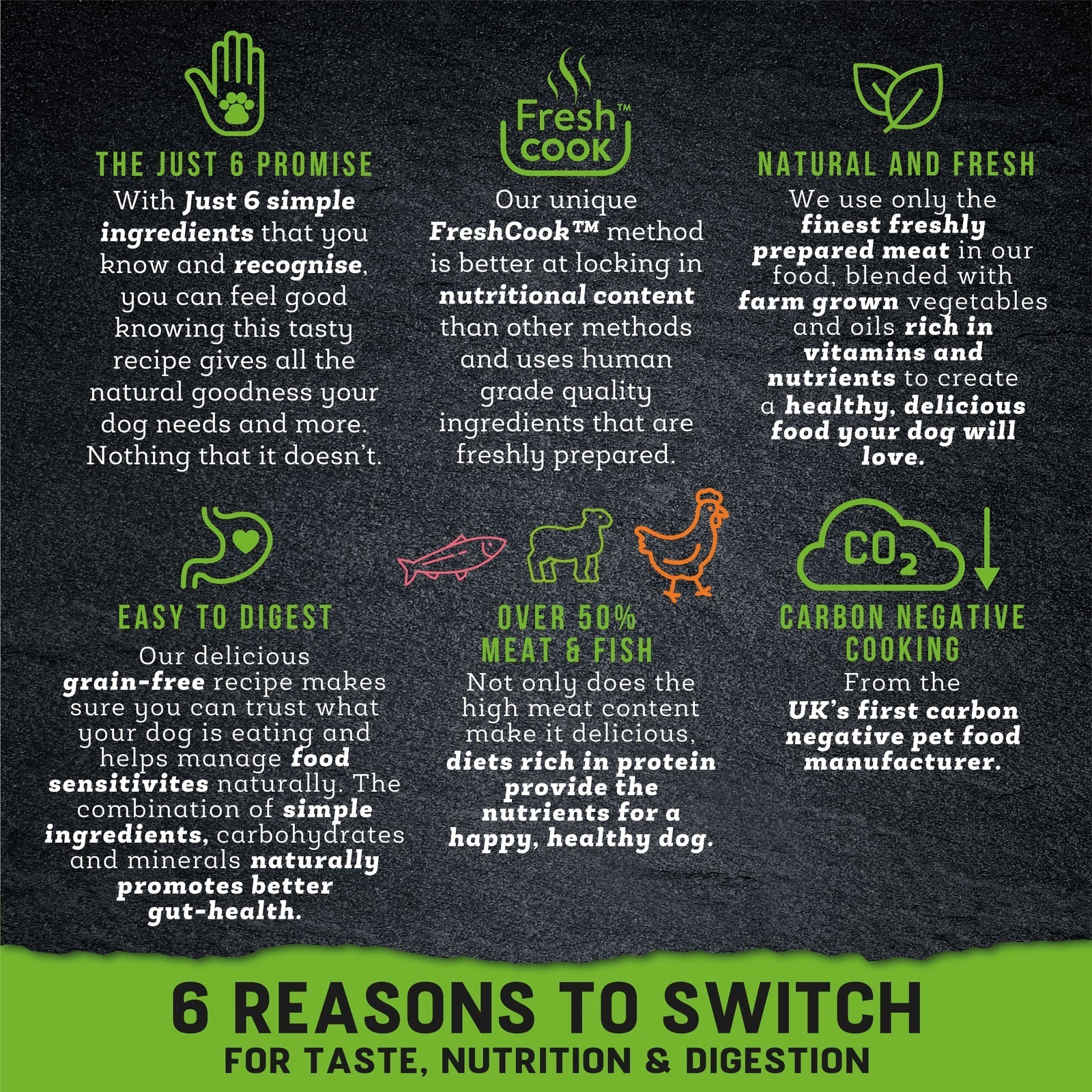 With "Just 6" you can rest assured that your dog receives the best nutrition from a simple yet wholesome recipe, allowing them to thrive and enjoy every mealtime.
