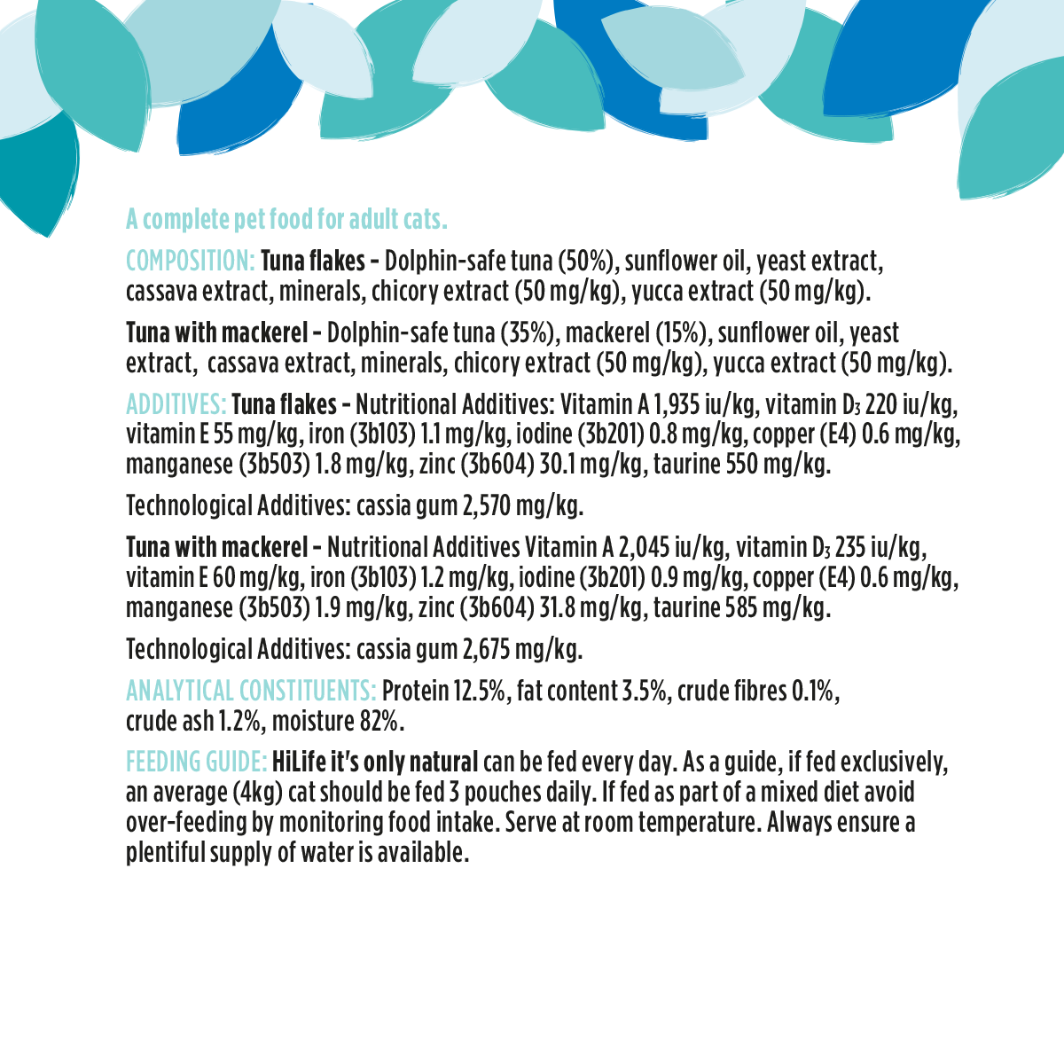 The HiLife "It's Only Natural" Tuna One is available in convenient packs of 8 or 32 pouches. It's a perfect choice for your feline companion, offering a delectable taste and natural goodness in every bite.
