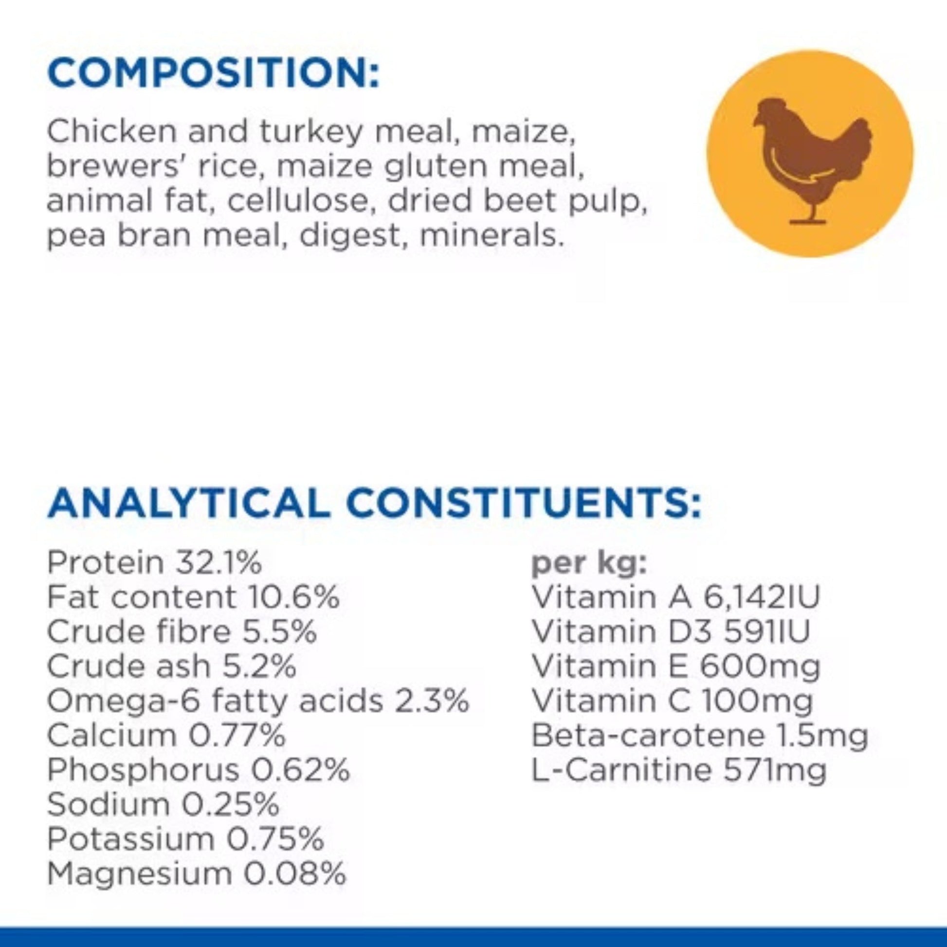 For your cat's skin and fur health, this diet contains Omega-6 fatty acids and Vitamin E. These essential nutrients work synergistically to promote beautiful skin and a lustrous coat, making your cat look and feel their best.