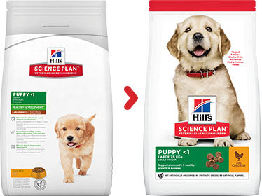 HILL's SCIENCE PLAN Large Breed Puppy food with Chicken is expertly formulated to cater to the unique developmental needs of large breed puppies. This diet is specially designed with an optimal level of calcium, which is crucial for controlled bone growth, an essential requirement for large-breed puppies.