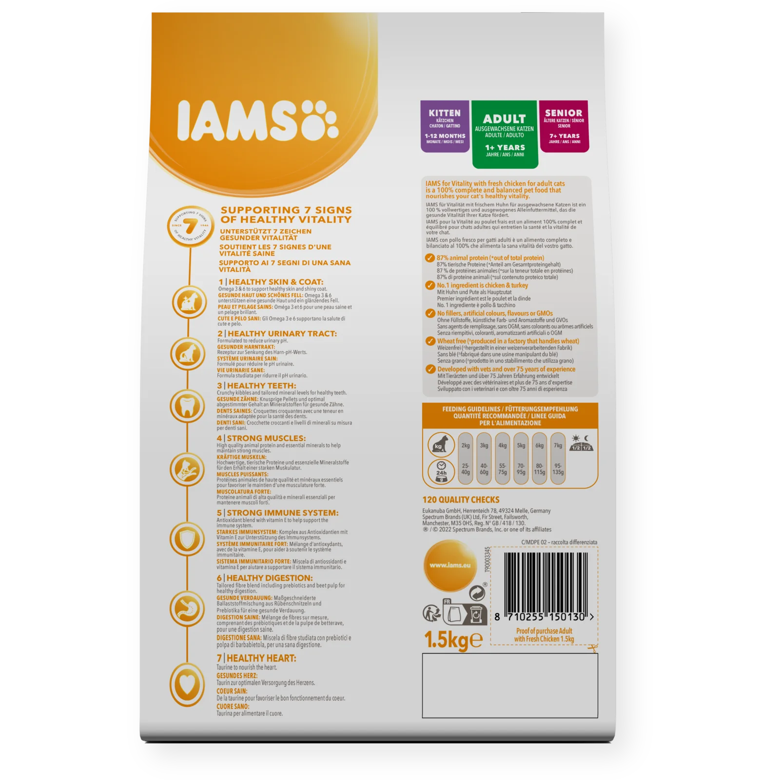 Iams Vitality Adult Fresh Chicken Dry Cat Food 1.5kg