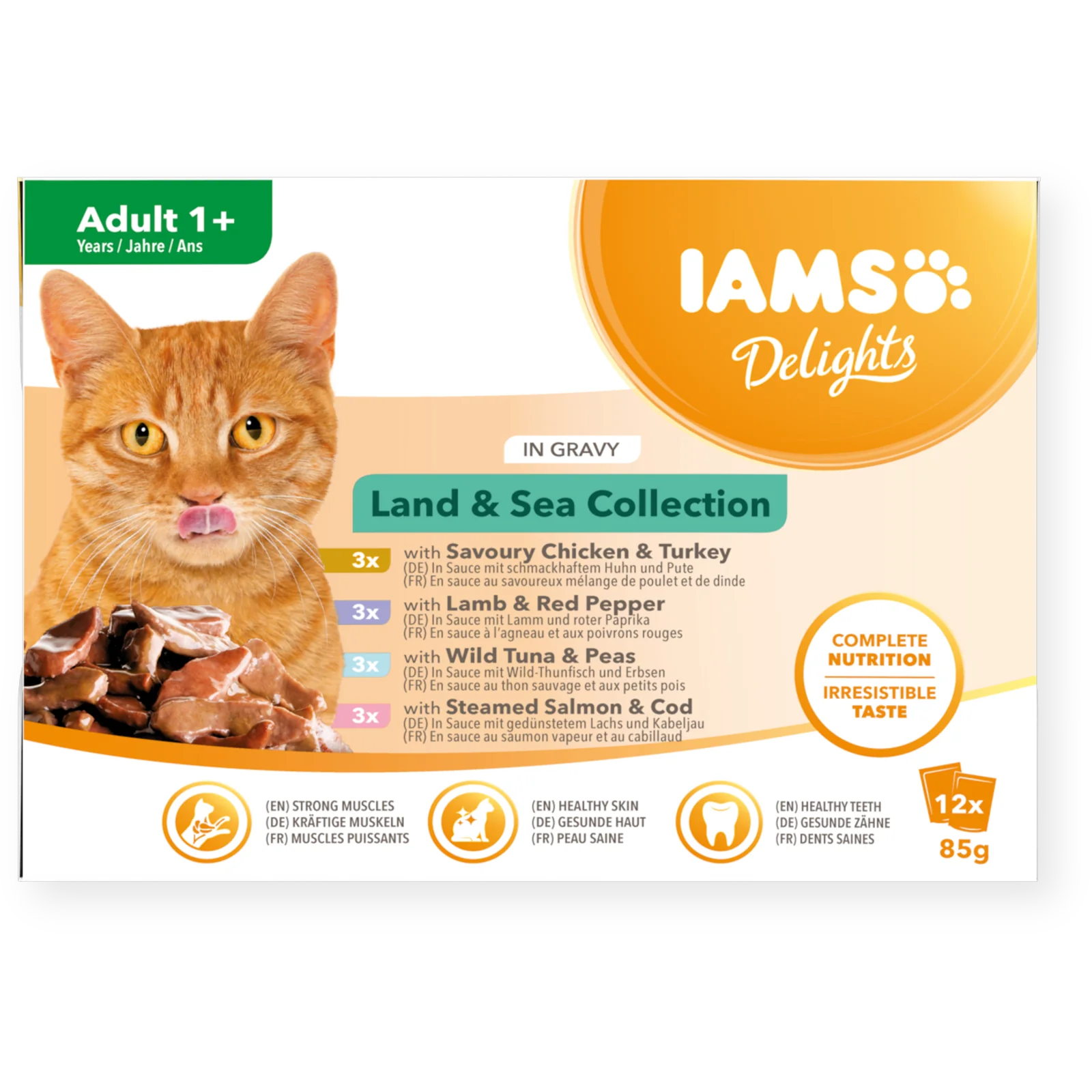 Iams Delights Adult Land & Sea Collection in Gravy Wet Cat Food 12 x 85g