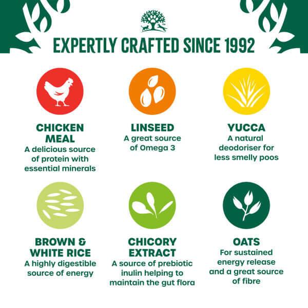 James Wellbeloved Adult Chicken & Rice Dry Dog Food offers a 15kg package of nourishing and tasty food designed specifically for adult dogs. This formula combines nature's finest ingredients with flavorful chicken, providing a source of highly digestible and high-quality protein. With decades of knowledge and experience in pet nutrition, James Wellbeloved has enriched this dog food with all the essential vitamins and minerals needed to keep your pet happy, healthy, and vibrant.