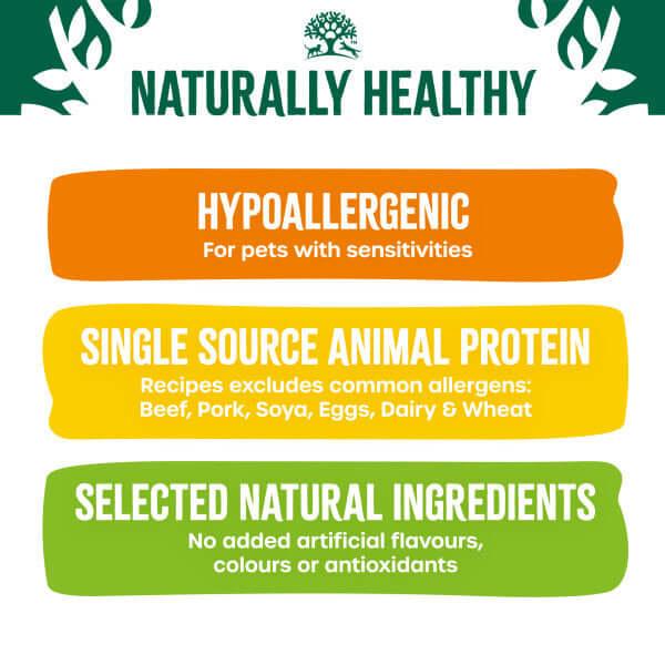 This dog food is hypoallergenic, making it an ideal choice for pets with food sensitivities or allergies. It is meticulously crafted using selected natural ingredients, and it does not contain any added artificial flavors, colors, or antioxidants, ensuring a pure and beneficial diet for your dog. Perfect for maintaining the overall health and well-being of your pet, James Wellbeloved’s Chicken & Rice formula supports a balanced diet while catering to dogs with special dietary needs.
