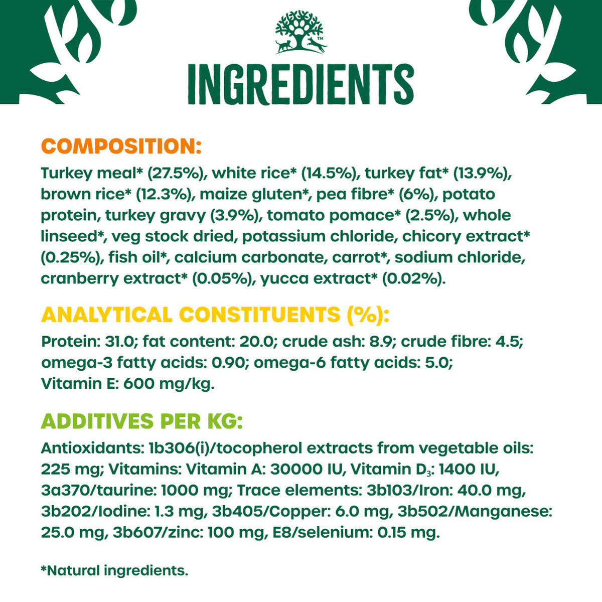 A complete dry food with the bonus that it is hypo-allergenic. With selected protein source (turkey), it is a dietetic food, excellent for the reduction of ingredient and nutrient intolerances. We suggest that the food be tried for a period of 3 to 8 weeks. If the signs of the food intolerance disappear, continue feeding indefinitely.
