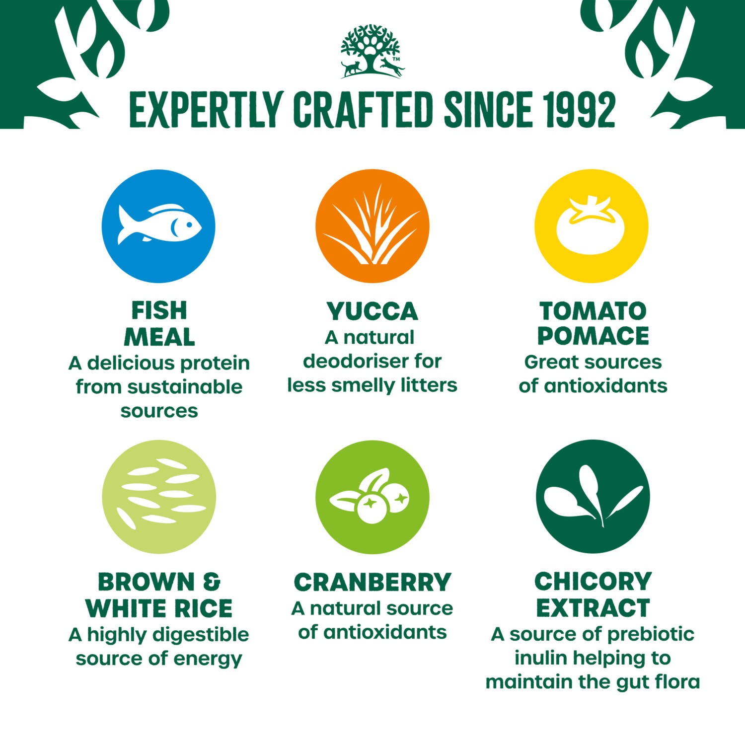 Naturally healthy complete cat food. No added artificial colours, flavours or preservatives. With cranberry extract to help maintain urinary tract health. Specially formulated to be gentle on kittens delicate digestive tracts