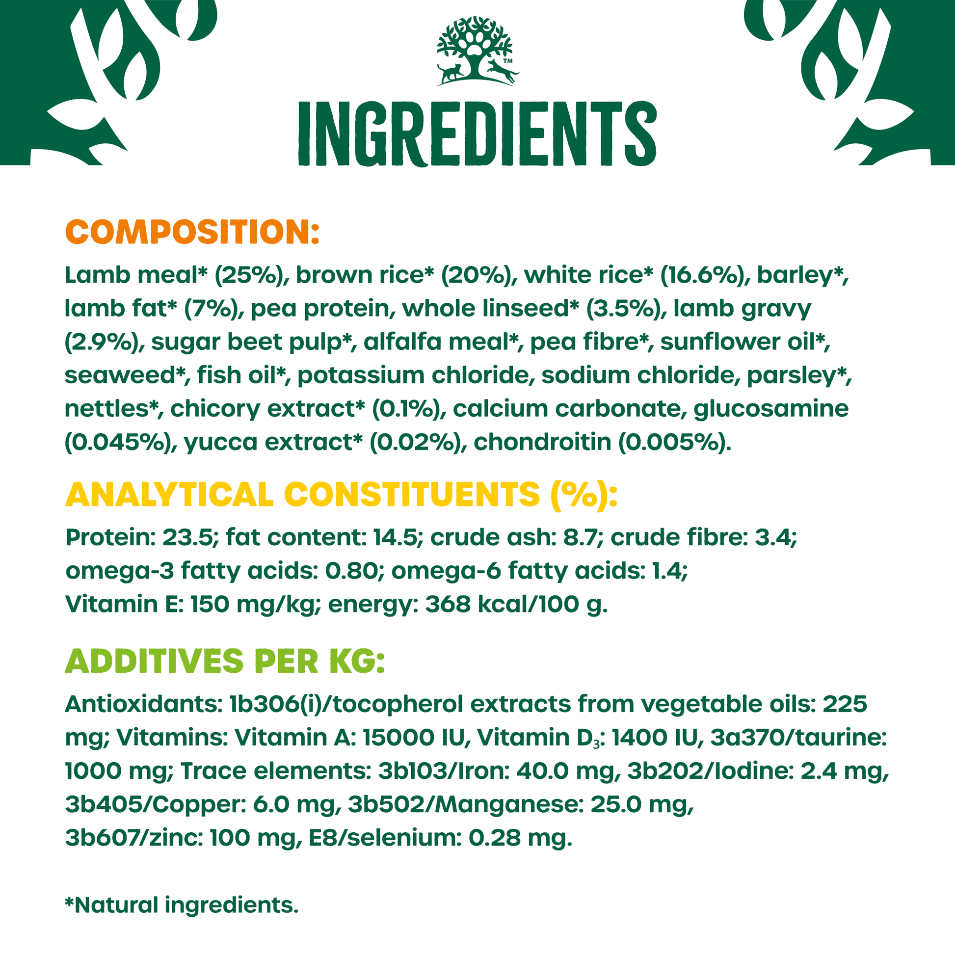 James Wellbeloved Large Breed Lamb & Rice Adult Dry Dog Food is carefully balanced and complete, providing all the essential vitamins, minerals, and antioxidants your dog needs for a healthy and happy life. The natural ingredients and the absence of artificial additives make it a wholesome choice for your furry friend.